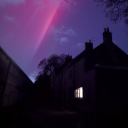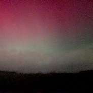 Red aurora over ready and wear slid then moving to directly scoot with green aurora on northern horizon.