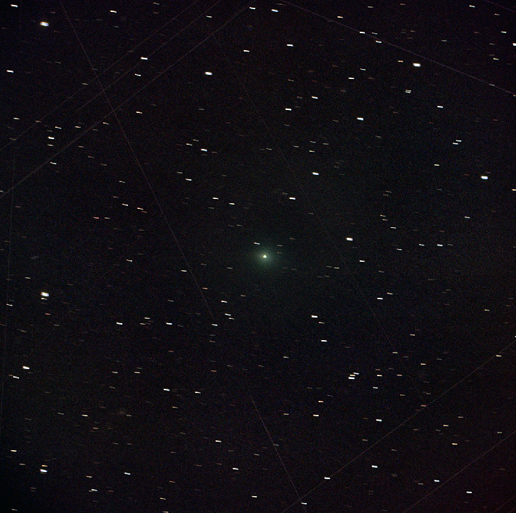 I finally managed to photograph the 3I/Atlas, very low on the horizon: it shows a green coma and a tail of dust. C14 + Hyperstar 14 V4 F/1.9 with ToupTek SkyEye 24AC + filter IDAS LPS2 & 16.5 min exp (99x10s).