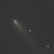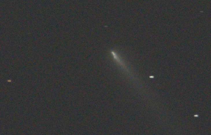 13:04 UTC, From Colorado, USA. Comet broken into 3 distinct chunks. Single 60 Second exposure on 12" newtonian reduced @ f3, tracked on comet via rates from https://astro.vanbuitenen.nl/ . Sony a6700