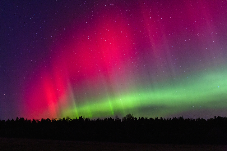 A spectacular all-sky auroral display. The reds, and eventually the greens, were easily visible to the unaided eye. It was bright!