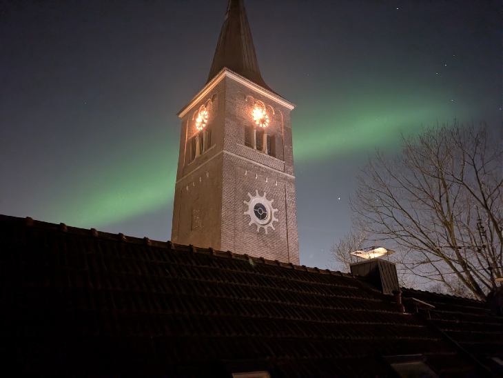 Auroras in middle of the town, photographed only with a cellphone (Pixel). It was so bright!
