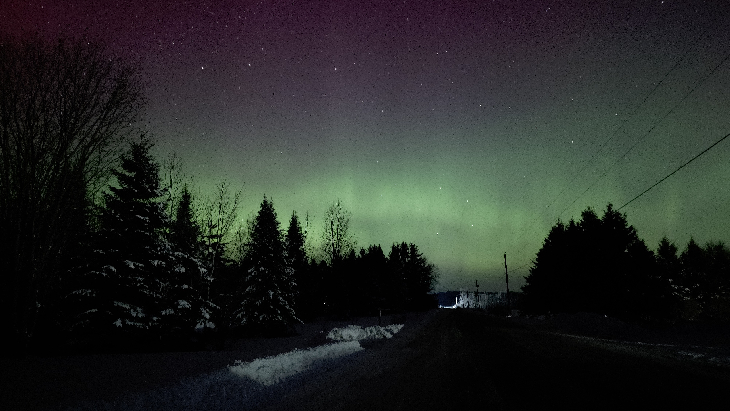 Beautiful display tonight from our driveway. Seeing Light Pillars, Seeing proton aurora blob, seeing the lights extending into the southern skies and the waves were incredible! Here are pictures taken with my Samsung S25 Ultra