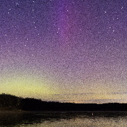 Night 1 of the CME impact on the 19th despite optimal viewing was an unusual dud in the central US for having a high value positive Bz from sunset onward. It wouldn’t drop into negative until daybreak of the 20th so I (along with everyone else) didn’t exactly score. On the evening of the 20th though it was ongoing but we were now plagued with clouds. A well timed opening between cloud decks at sundown did allow clear view of a brief substorm before the sky closed up again. Canon cameras, ISO 1600, F5.0, 30s