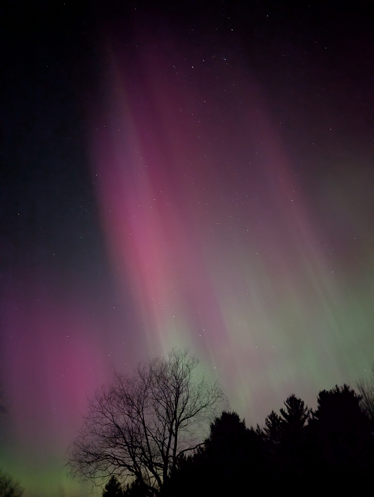 Early evening aurora lasted through early morning throughout Vermont. Android w/ 6 sec. exposure