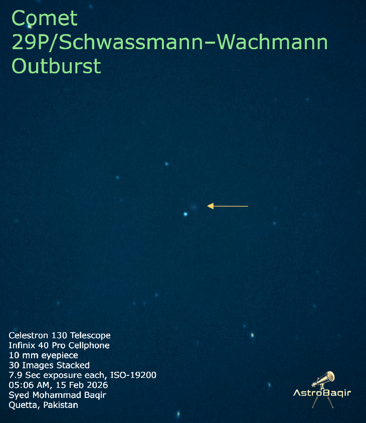 Its comet 29P outburst which is a spectacular event. Here i took images and then stacked them to get this result. I used 130 mm Celestron Astromaster telescope and my android cellphone to get these images.