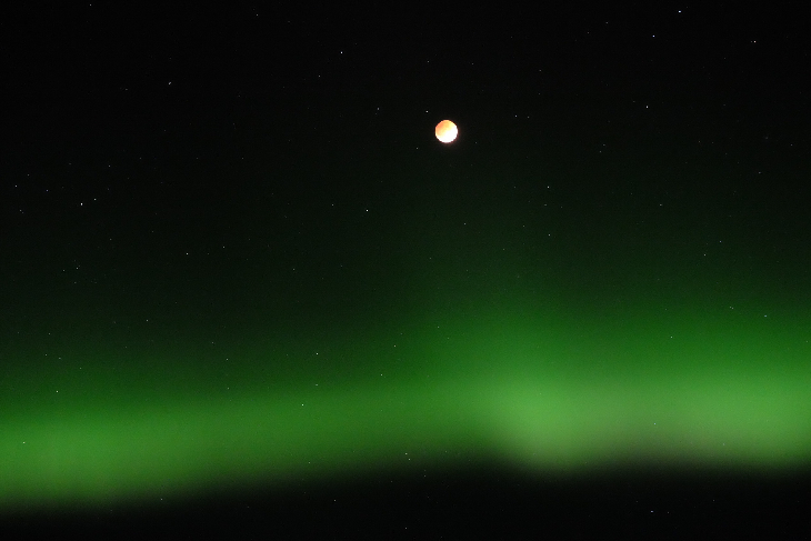 It was a fantastic night with a clear sky. Amazing moment was coming around almost midnight in Coldfoot, Alaska at 30 below. My cameras were almost frozen, but I barely captured the total eclipse with the aurora band. More photos will be uploaded.