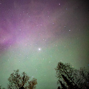 Tonight I could see the skies were brightening and I grabbed my gear and headed out. The conditions were not great with lots of haze and clouds rolling in. The whole sky was bright enough to cast weak shadows and I could see there was aurora activity directly overhead through the haze and the photographs confirmed this.
