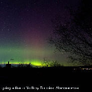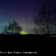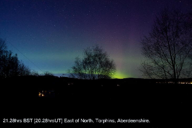 Subdued Aurora display, activity as got dark around 21.28hrsBST/20.28UT. Strong Arc and short burst of small rays.Looking North near Torphins, Aberdeenshire.