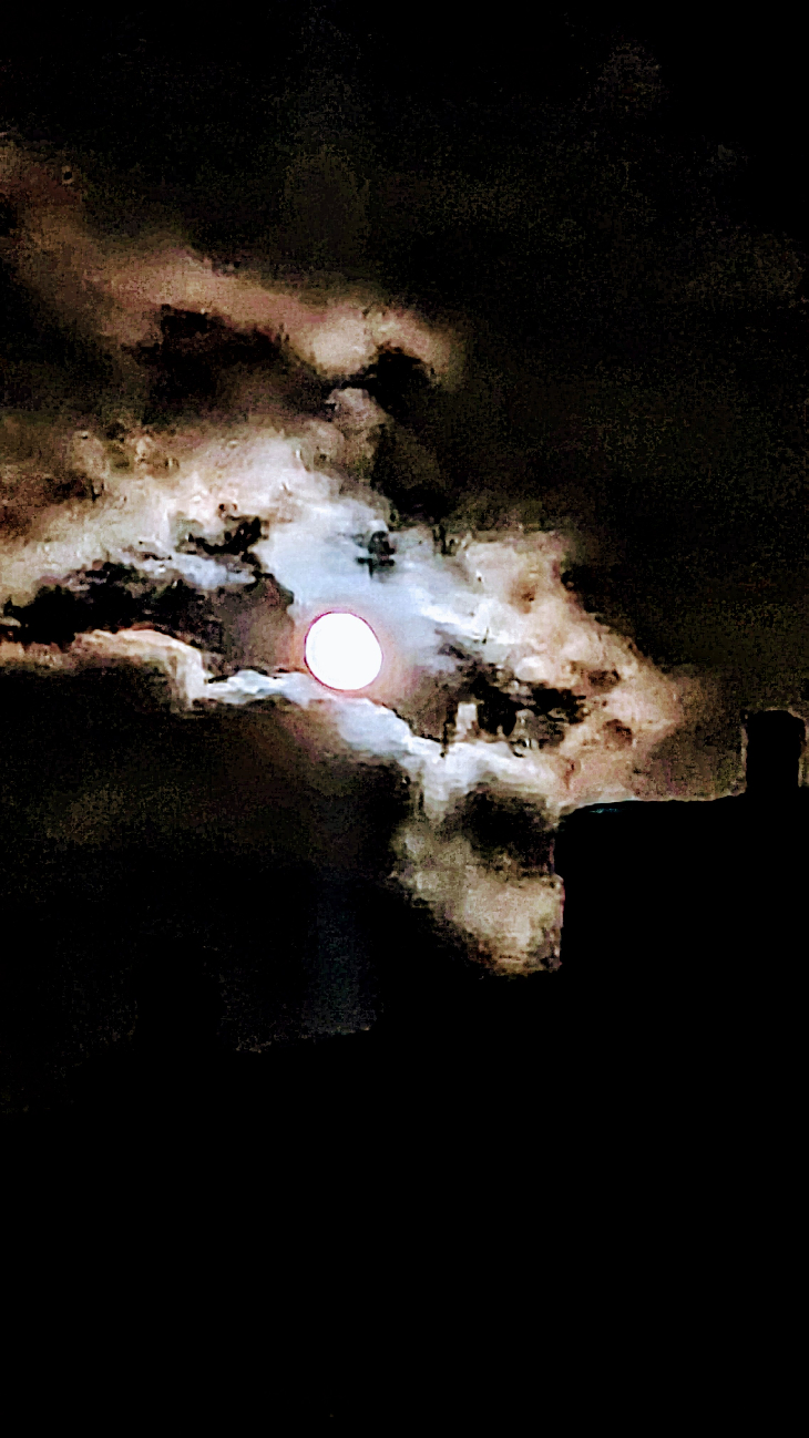 The waining Moon popping out through the clouds as Storm Dave rages.Google Pixel 6a.