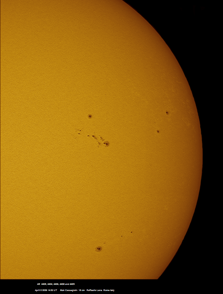 Sunspots 4408, 4409, 4404, 4405, 4406 imaged using a TMB 13 cm refractor.