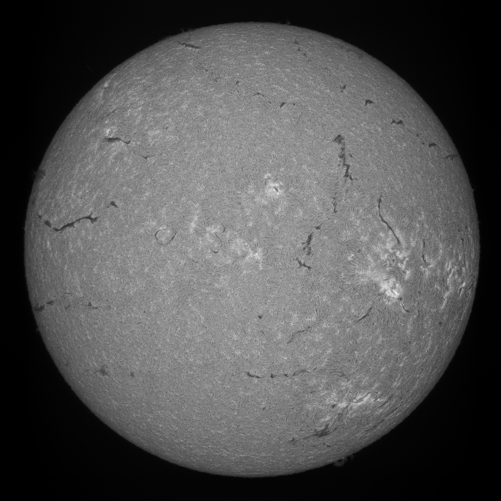 Here is an h-alpha and calcium-H image of the sun this morning recorded with a homemade 102mm f/7 spectroheliograph. The seeing was quite good for April.