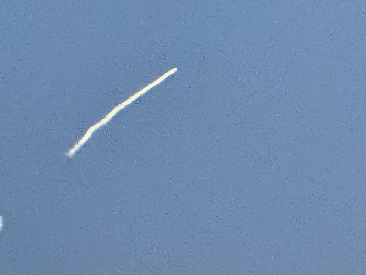 After sitting outside and watching the beautiful sunset Monday afternoon from Lodi, California, I ended up turning my head to the south and I saw this bright arc like a rocket launch of starling satellites likely coming from Santa Barbara somewhere in Southern California.