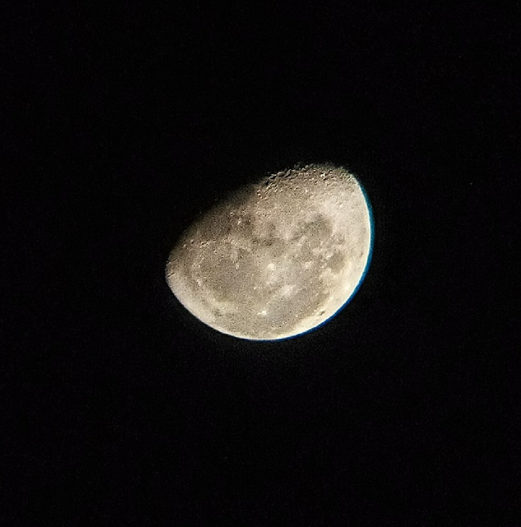 Another 'upside down' image of tonight's Waning Moon. 60mm Spotting Scope at x20 and phone camera.