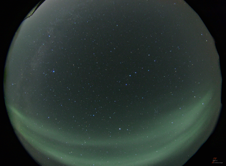 The arc became visible at approximately 02:35 MDT and remained visible until 03:59 MDT. It was captured by our AllSkEye camera. (note: the AllSkEye image is mirrored for east and west).
