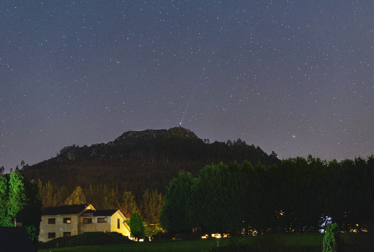 Comet C/2025 R3 PanSTARRS above O Pico Sacro (Sacred Peak)