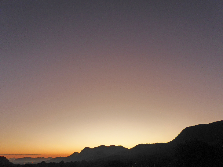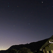 Clear sky and excellent visibility in the evening on Sunday 12th April provided a good view of yet another volcanic sunset twilight arch developing and then fading with the two planets Venus and Jupiter both visible in last frames taken on the 12th and 13th. The 12th was the first occasion on which Venus was high enough above the Christmas Pass horizon (to the WNW) and Jupiter was close enough to the summit of Transmitter Hill (to the NW of Mutare) for them both to be captured in the same 3:4 aspect ratio camera field of view just before dark. They are at present about 64 degrees apart and during the next two months the two planets will be approaching each other to have a spectacular close encounter on June 7- 8th when they will be about 3 times the width of the Full Moon apart. It will be interesting to see if the volcanic sunsets (which are being caused by remaining stratospheric aerosols from the January 2022 eruption of the Hunga-Tonga volcano) will still be present then (four-and-a-half years after the eruption)! The visibility of the planets and stars in the last two images has been enhanced using Star Spikes Pro filter. Camera: Tripod-mounted Panasonic Lumix DMC-TZ60 in sunset and manual exposure modes.
