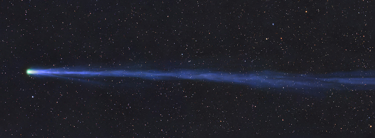 -Comet: C/2025 R3 Panstarrs -Date/Time Local: 4/15/26 4:02am MST -Date/Time UT: 4/15/26 11:02 UT -FOV: 6.3 x 2.1deg -Orientation: W left -Seeing:1 -Transparency: 4 -Scale: 14.2 arcsec/Pixel -Instrument: RASA 8 f/2 -Exposure: 40 total -Camera: ASI2600MC -Location: Payson,AZ