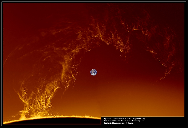 Coronal Mass Ejection oct 8th, refractor 230mm f/D 9, bassler ACA 1300 ( poor seeing 3/10) mosaic of 2 images