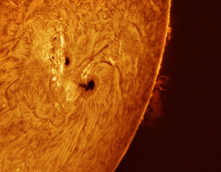 Sun Spot 1944 has been the most Photogenic sun spot that I recall. Imagers around the world had summited amazing photos of this remarkable active region. Unfortunately like all Sun spots is reaching the western limb ending its journey and visibility to us on earth.
