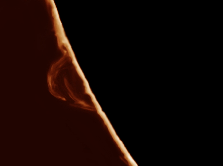 Today what the Sun lacks on surface activity, it sure makes it up with Prominences. A beautiful looping prominence next to a bright more defuse cloud of plasma.