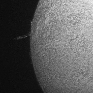 Living in Northeast Ohio, clear skies this time of year are rare. When the Sun popped out Friday morning I decided to take a look. The prominence on the rim looked interesting, so I took a closer look using a 2X barlow to zoom in. The 4 zoomed images were from movies taken at 3 minute intervals.