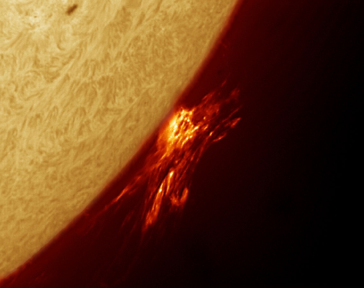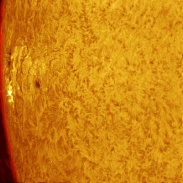 Imaged on south west limb of Sun in lucky cloud break. Also image of AR1967 rounding the limb. Taken with Solarscope 70mm