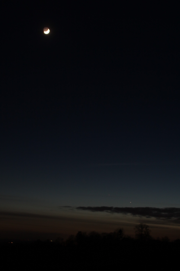 Crescent Moon and Mercury in the early evening twilight. (02/02/2014 18:19 UTC)