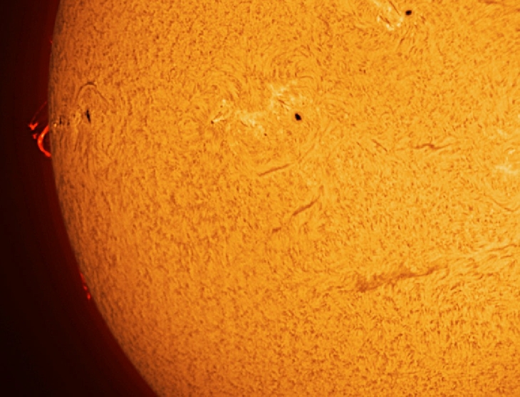 A M.1 level flare occurred at 16:00 UTC this morning on the East limb. I captured a post flare loop prominence a couple of hours later with my 40mm PST and a DMK 41 camera.