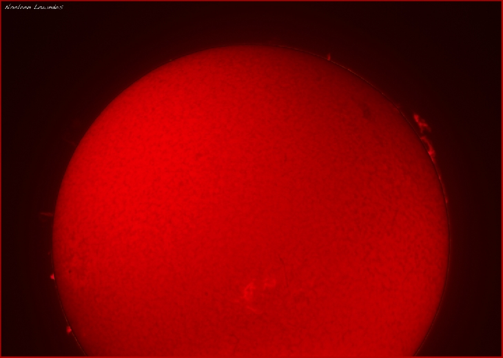 The surface of the Sun was much quieter today, but there was this beautiful prominence that was erupting on the eastern limb that looked quite spectacular. It was very large and delicate in shape and as I watched it throughout the day its shape changed quite dramatically…which was very interesting to watch.