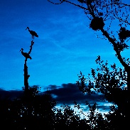 Noctilucent clouds and storks ( Ciconia ciconia)over Poland, last night.