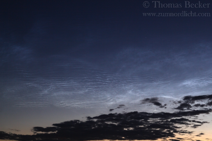 On the morning of 4. July I saw over Berlin a fantastique display of noctilucent clouds. Very bright, very large and with great stuctures. Look at my timelapsevideo on http://www.zumnordlicht.com/fotogalerien/nlc-s/
