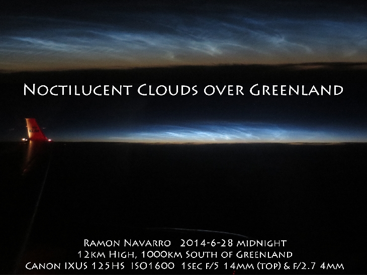 Nice display of Noctilucent clouds over Greenland.