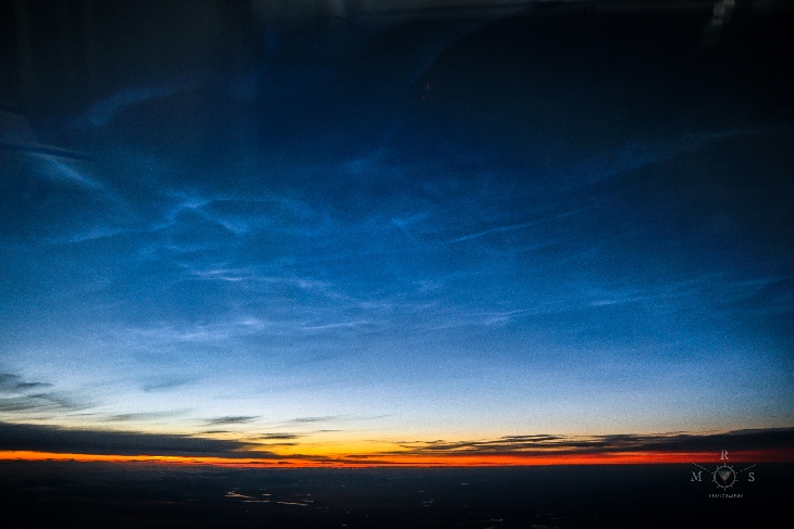 Taken by Ruslan Merzlyakov on July 3, 2014 @ Noctilucent clouds over Norway seen from plane on flight from Riga to Bergen on 3rd July, 2014. Shot on Canon EOS 7D with Samyang 14mm.