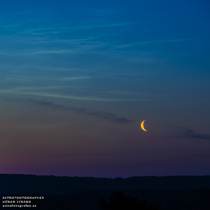 Just when I was about to go to bed tonight I saw my first NLC this summer. Our bright summer nights here in norther Sweden is coming to an end and we finally get to see something else than bright sky. Tonight I got to see some NLC and Vega for the first time, the rising crescent Moon made the night even better.