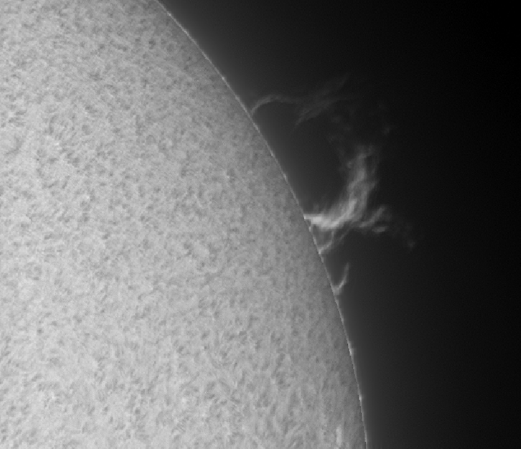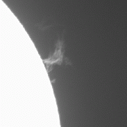 The AVIs were processed in Registax 5 and then made into an animation. A disk image was combined with one of the images to see the prominence in the context of disk