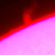 A few nice edge prominences on the sun today. Eyepiece projection with Lunt 35 and Canon T2i.